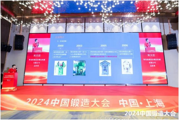 青島浩源益友鍛壓機械有限公司總經理宋大臣作《新型高能螺旋壓力機的發展現狀及應用》報告