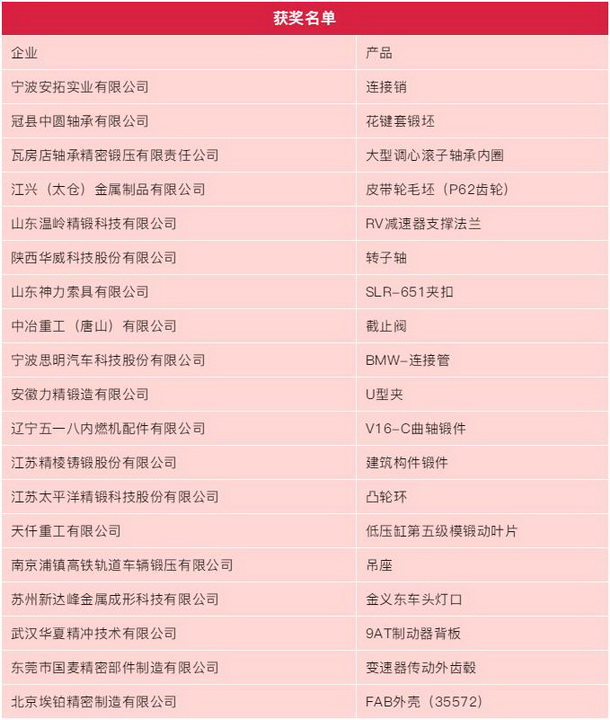 其中“神工獎”是由中國鍛壓協會自2002年起組織的一項重要的行業工作,今年走到十九個年頭,至今已有五百多家企業近千件零部件參評,評選工作有效地促進了參評零部件企業的技術改進與提升,并成為企業和采購商談判時的加分項。