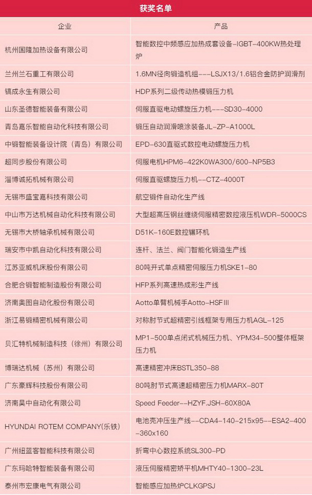 鍛造、沖壓和鈑金制作技術裝備“金鉆獎”